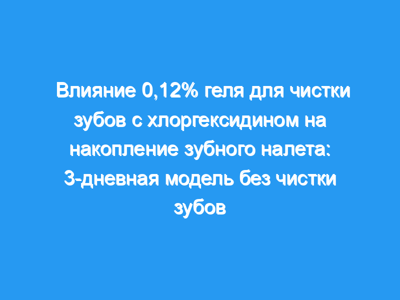 Целью настоящего исследования была оценка влияния применения 0,12% геля для чистки зубов CHX на накопление зубного налета de novo.