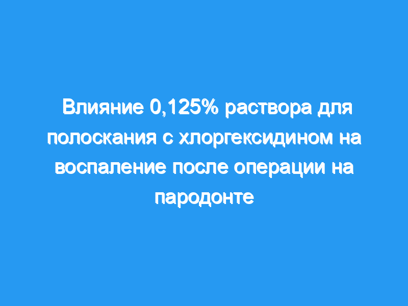 Целью данного исследования было определить влияние 0,125% раствора хлоргексидина глюконата для полоскания на воспаление и образование бактериального налета после операции на пародонте.
