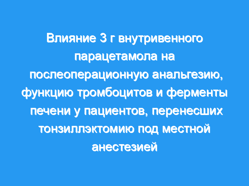 Сто семь пациентов, перенесших тонзиллэктомию под местной анестезией, были случайным образом распределены для внутривенного приема 3 г парацетамола, 75 мг диклофенака или плацебо перед операцией. Потребление послеоперационного морфина с использованием контролируемого пациентом устройства для обезболивания определяли количественно в течение 6 часов. Измеряли агрегацию тромбоцитов и концентрации парацетамола, печеночных аминотрансфераз, глутатионтрансферазы альфа 1-1 (GSTA1-1) и тромбоксана В(2).