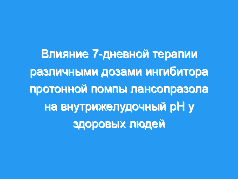 Мы исследовали влияние 7-дневной терапии различными дозами лансопразола (15 мг один или два раза в день, 30 мг один или два раза в день и 15 мг три раза в день) на внутрижелудочную кислотность и стимулированный приемом пищи дневной уровень гастрина в плазме крови у 12 здоровых людей, отрицательных к Helicobacter pylori, в рандомизированном, двойном слепом, плацебо-контролируемом, 6-стороннем перекрестном исследовании. На 1, 2 и 7-й дни исследования проводили 24-часовую внутрижелудочную рН-метрию и 12-часовое комплексное определение гастрина в дневное время в плазме крови.