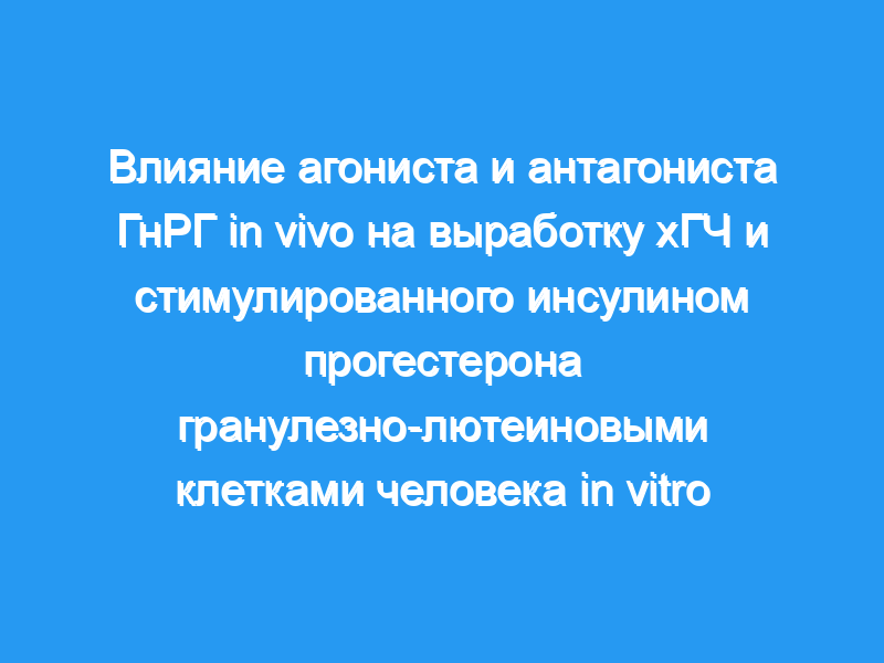 хГЧ стимулировал выработку Р hGLCs в циклах, в которых использовался антагонист ГнРГ, но в циклах, обработанных агонистом ГнРГ, наблюдался притупленный ответ. Стимулируемая инсулином выработка Р была аналогичной в клетках из циклов, в которых применяли лечение ГнРГ-агонистом или ГнРГ-антагонистом.