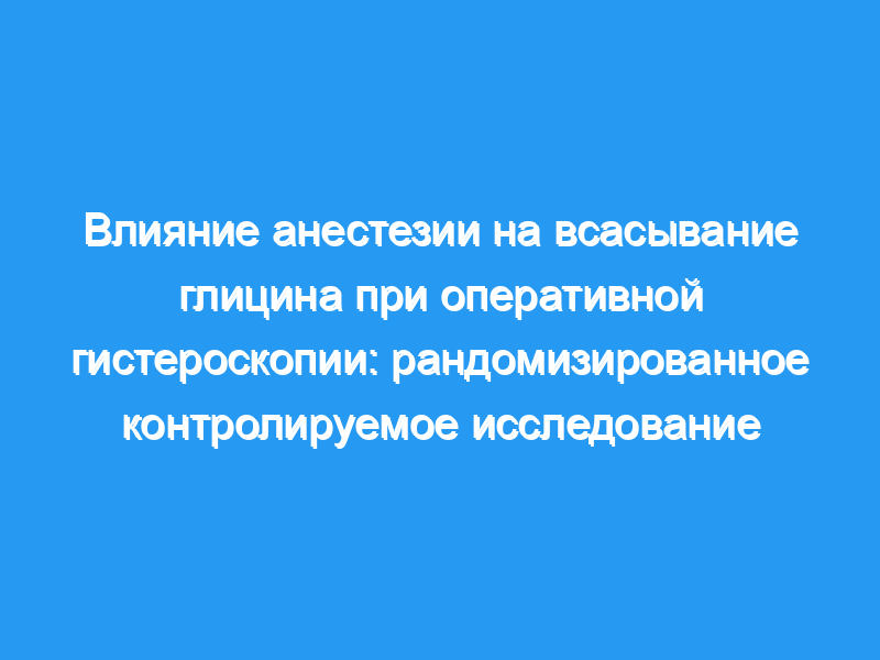 По сравнению с общей анестезией местная анестезия с седацией связана с меньшей абсорбцией глицина и должна рассматриваться как предпочтительный метод анестезии при оперативной гистероскопии.