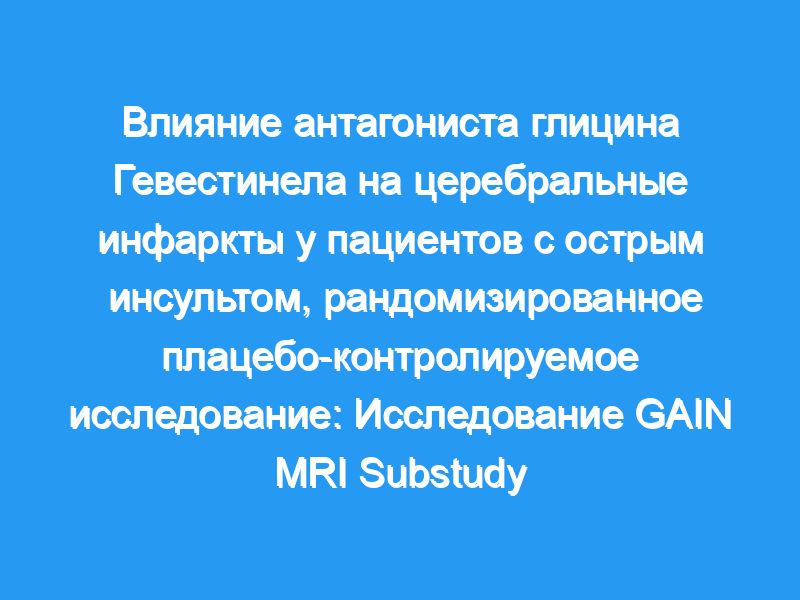 Предпосылки и назначение: Gavestinel, GV150526, является селективным антагонистом глицинового сайта рецептора N-метил-D-аспартата. Безопасность и эффективность GV150526 были изучены в двух рандомизированных плацебо-контролируемых клинических исследованиях III фазы у пациентов с острым ишемическим инсультом в течение 6 ч от начала [Антагонист глицина в исследованиях Neuroprotection (GAIN) International и GAIN Americas]. Запланированное МРТ-исследование в рамках этих исследований изучало влияние гавестинела на объем инфаркта.