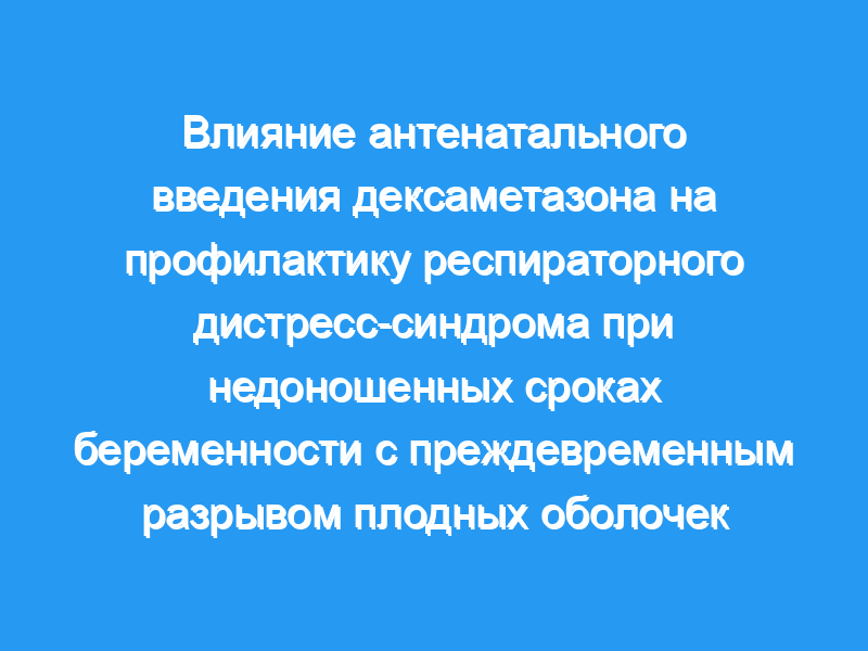 Было проведено проспективное слепое рандомизированное исследование для определения влияния послеродового введения дексаметазона на частоту респираторного дистресс-синдрома у 250 пациенток с гестациями от 28 до 33 недель, осложненными преждевременным разрывом мембраны.