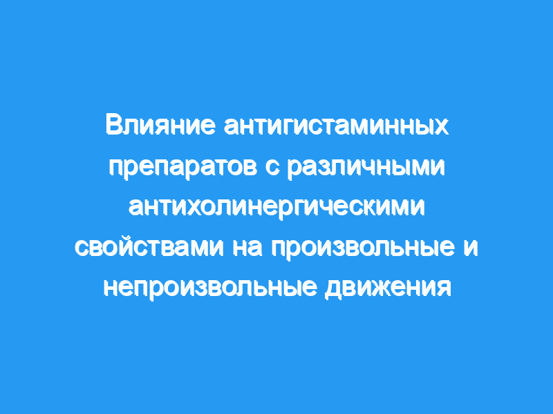 Последние данные указывают на то, что антигистаминные препараты могут влиять на движение, что, скорее всего, связано с изменением нейротрансмиссии в холинергических и гистаминергических путях. Целью этого исследования было определить, влияют ли антигистаминные препараты с различными антихолинергическими свойствами по-разному на произвольный и непроизвольный контроль движений.