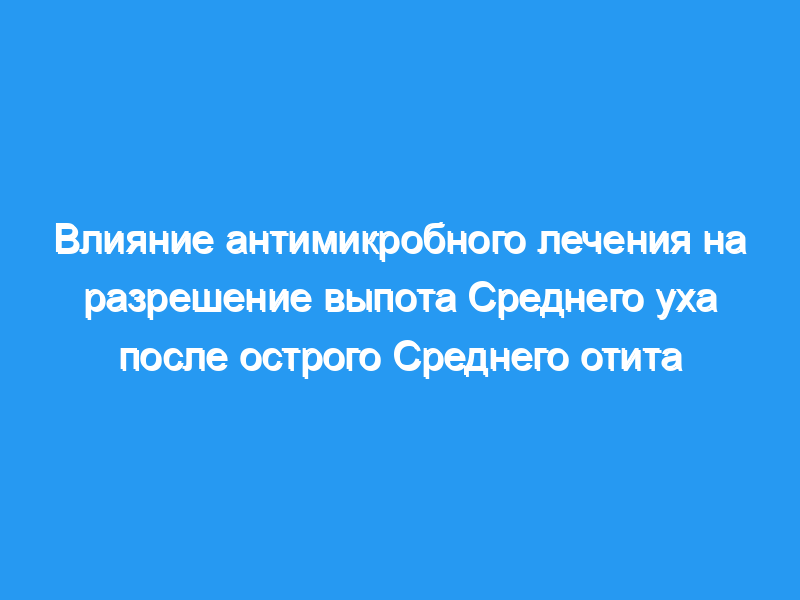 Острый средний отит (AOM) вызывает выпот из среднего уха (MEE), который влияет на слух. Влияние противомикробной терапии на разрешение MEE является спорным, и факторы, влияющие на разрешение, неизвестны.