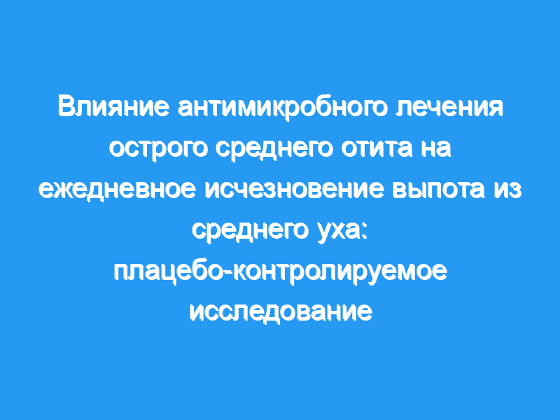 Выпот из среднего уха исчез на 2,0 недели (13,7 дня) раньше (P = 0,02) в группе, получавшей противомикробные препараты (среднее время 2,7 недели, 95% ДИ 1,7-3,7), чем в группе плацебо (4,7 недели, 95% ДИ 3,6-5,7). Нормальные результаты отоскопии наблюдались на 1,4 недели раньше в группе, получавшей противомикробные препараты, чем в группе плацебо (Р = 0,02). На 14-й день у 69% детей в группе, получавшей противомикробные препараты, и у 38% в группе, получавшей плацебо, были нормальные результаты тимпанометрии (количество, необходимое для лечения, 3,2, 95% ДИ 2,0-10,5). На 60-й день у 2 детей (5%) в группе, получавшей противомикробные препараты, и у 10 детей (24%) в группе плацебо наблюдался стойкий МЭЭ (Р = 0,01). Выводы и актуальность: Антимикробное лечение эффективно сократило продолжительность МЭЭ и возможные сопутствующие нарушения слуха у детей с АОМ. Противомикробное лечение также снижало риск персистирующего МЭЭ. Пробная регистрация: clinicaltrials.gov Идентификатор: NCT01244581.
