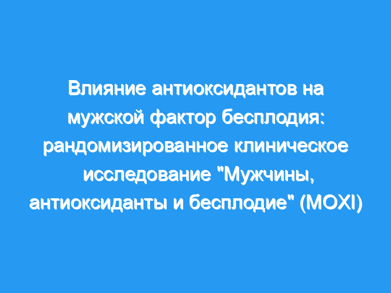 Девять центров фертильности в Соединенных Штатах с декабря 2015 по декабрь 2018 года. Пациент(ы): Мужчины (N = 174) с концентрацией сперматозоидов ≤15 млн/мл, подвижностью ≤40%, нормальной морфологией ≤4% или фрагментацией ДНК >25%, а также женщины-партнеры, у которых была овуляция, возраст ≤40 лет и была подтверждена проходимость маточных труб. Вмешательство (ы): Мужчины, рандомизированные для получения антиоксидантного препарата (n = 85), содержащего 500 мг витамина С, 400 мг витамина Е, 0,20 мг селена, 1000 мг l-карнитина, 20 мг цинка, 1000 мкг фолиевой кислоты, 10 мг ликопина ежедневно, или плацебо (n = 86). Лечение продолжалось минимум 3 месяца и максимум 6 месяцев, и пары пытались забеременеть естественным путем в течение первых 3 месяцев и с помощью цитрата кломифена с внутриматочным оплодотворением партнерши через 4-6 месяцев. Основные показатели результата (ов): Первичным результатом было живорождение, вторичные исходы включали беременность в течение 6 месяцев лечения. Для внутреннего пилотного исследования первичными результатами были параметры спермы и индекс фрагментации ДНК сперматозоидов после 3 месяцев лечения. Результат(ы): В исследовании «Мужчины, антиоксиданты и бесплодие» (MOXI) после 3 месяцев лечения изменение концентрации сперматозоидов различалось между группой антиоксидантов (медиана -4,0 [межквартильный диапазон — 12,0, 5,7] млн/мл) и группой плацебо (+2,4 [-9,0, 15,5] млн/мл). Однако не было статистически значимых различий между двумя группами в отношении изменений морфологии сперматозоидов, подвижности или фрагментации ДНК. Среди 66 мужчин с олигоспермией при рандомизации концентрация сперматозоидов не отличалась через 3 месяца между основной и контрольной группами: 8,5 (4,8, 15,0) млн/мл против 15,0 (6,0, 24,0) млн/мл. Из 75 мужчин с астеноспермией подвижность не отличалась через 3 месяца: 34% ± 16,3% против 36,4% ± 15,8%. Среди 44 мужчин с высокой фрагментацией ДНК фрагментация ДНК не отличалась через 3 месяца: 29.5% (21.6%, 36.5%) против 28.0% (20.6%, 36.4%). Во всей когорте совокупное живорождение не отличалось через 6 месяцев между группами антиоксидантов и плацебо: 15% против 24%. Вывод(ы): Антиоксиданты не улучшают параметры спермы или целостность ДНК у мужчин с мужским фактором бесплодия. Хотя это исследование ограничено размером выборки, оно предполагает, что антиоксидантное лечение партнера-мужчины не улучшает показатели беременности или живорождения in vivo. Регистрационный номер клинического испытания: NCT02421887.