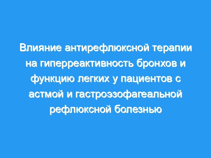 Изучить влияние антирефлюксной терапии на гиперреактивность бронхов и функцию легких у пациентов с астмой и гастроэзофагеальной рефлюксной болезнью (ГЭРБ).