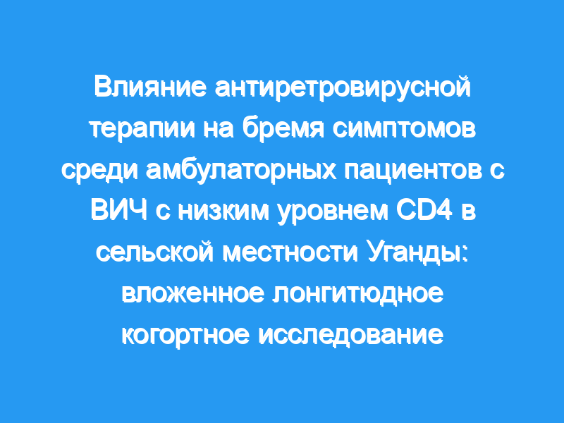 Люди с ВИЧ имеют высокую распространенность физических и психологических симптомов на протяжении всего течения заболевания. Несмотря на клинические и медицинские последствия неразрешенной боли и симптомов, мало что известно о влиянии антиретровирусной терапии (АРТ) на эти исходы. Это исследование было направлено на оценку влияния на бремя симптомов в течение года после начала АРТ у лиц с количеством CD4 <200 клеток/мкл в Уганде.