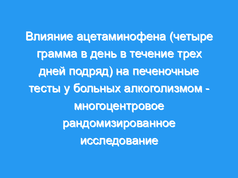 Взрослые алкоголики, поступившие в два центра детоксикации от алкоголя, были включены в проспективное двойное слепое рандомизированное плацебо-контролируемое исследование. Испытуемых рандомизировали на прием ацетаминофена по 4 г/сут или плацебо в течение 3 дней подряд. В исследовании с 95% вероятностью была обнаружена разница в уровне АЛТ в сыворотке крови на 15 МЕ/л.
