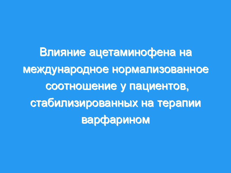 Клиника антикоагуляции в Медицинском центре по делам ветеранов. Пациенты: Тридцать шесть взрослых пациентов, получавших варфарин, со стабильными МНО, определяемыми как два последовательных МНО с интервалом не менее 3 недель, которые находились в пределах терапевтического диапазона. Вмешательство: Пациенты были рандомизированы для приема ацетаминофена по 1 г два раза в день вместе с соответствующим плацебо два раза в день (12 пациентов), ацетаминофена по 1 г 4 раза в день (12 пациентов) или соответствующего плацебо 4 раза в день (12 пациентов) в течение 4 недель. Измерения и основные результаты: Первичной конечной точкой была разница в среднем МНО между группами с недельными интервалами. Вторичными конечными точками были процентные доли пациентов в каждой группе с супратерапевтическим (INR & gt, or = 0,3 выше верхней границы их терапевтического диапазона) или субтерапевтическим (INR & gt, or = 0,2 или 0,3 ниже нижней границы их соответствующего терапевтического диапазона 2,0-3,0 или 2,5-3,5) INRs и разница в средних уровнях сывороточной аланинаминотрансферазы (АЛТ) и аспартатаминотрансферазы (АСТ) между группами с интервалом в две недели. Медленное зачисление и предварительное наблюдение за тем, что у 15 пациентов наблюдалось повышенное МНО, побудили к досрочному прекращению исследования. На 2-й неделе группа, получавшая ацетаминофен по 2 г/сут, имела значительно более высокое среднее МНО по сравнению с группой плацебо (р=0,01). На 1-й, 2-й и 3-й неделях группа ацетаминофена в дозе 4 г/сут имела значительно более высокие средние значения INR по сравнению с таковыми в группе плацебо (р=0,04, р=0,01, р=0,01 соответственно). Кроме того, 13 (54%) из 24 пациентов в группах ацетаминофена вместе взятых превысили верхнюю границу своего терапевтического диапазона на 0,3 или более по сравнению только с 2 (17%) из 12 пациентов в группе плацебо. На 4-й неделе не было обнаружено статистически значимых различий в уровнях АЛТ или АСТ в сыворотке крови между группами ацетаминофена и группой плацебо, однако на 2-й неделе наблюдалось статистически значимое увеличение среднего уровня АЛТ в группе ацетаминофена 4 г/сут по сравнению с группой плацебо.