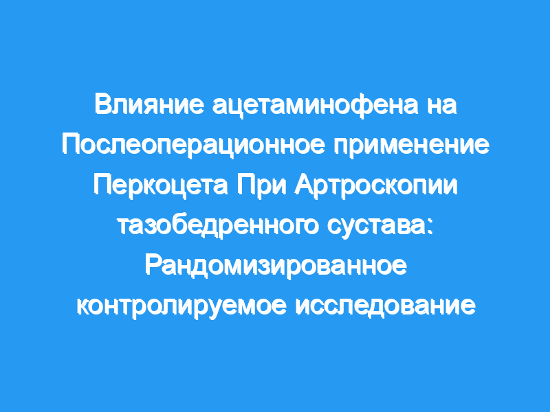 Результаты этого рандомизированного контролируемого исследования предполагают, что послеоперационный ацетаминофен может не влиять на снижение количество наркотических таблеток, потребляемых пациентами, не принимающими опиоиды, после артроскопии тазобедренного сустава в условиях сокращения назначения опиоидов хирургами-ортопедами. Кроме того, результаты этого исследования предполагают, что хирурги могут сократить послеоперационное назначение лекарств без снижения удовлетворенности пациентов после артроскопии тазобедренного сустава. Уровень доказательности: II рандомизированное контрольное исследование.