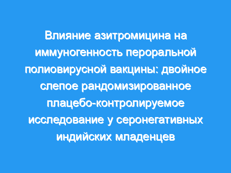 Мы провели двойное слепое рандомизированное плацебо-контролируемое исследование влияния азитромицина на иммуногенность моновалентной пероральной полиовирусной вакцины серотипа 3, которую вводили здоровым младенцам, проживающим в 14 кварталах округа Веллор, Индия. Младенцы имели право участвовать, если им было 6-11 месяцев, они были доступны на время исследования и у них не было сывороточных нейтрализующих антител к полиовирусу серотипа 3. Младенцы были рандомизированы (1:1) при поступлении на прием для перорального приема азитромицина в дозе 10 мг/кг или плацебо один раз в день в течение 3 дней с последующей моновалентной пероральной вакциной против полиовируса серотипа 3 на 14-й день. Первичным результатом было обнаружение в сыворотке нейтрализующих антител к полиовирусу серотипа 3 в разведении один к восьми или более на 35-й день, и его оценивали в популяции согласно протоколу (т.е. все те, кто получал азитромицин или плацебо, пероральную полиовирусную вакцину и предоставил образец крови в соответствии с протоколом исследования). Результаты безопасности были оценены у всех младенцев, включенных в исследование. Исследование зарегистрировано в Реестре клинических испытаний Индии, номер CTRI/2014/05/004588 . Результаты: В период с 5 августа 2014 года по 21 марта 2015 года 754 ребенка были рандомизированы: 376 получили азитромицин и 378 — плацебо. Из них 348 (93%) из 376 детей в группе азитромицина и 357 (94%) из 378 детей в группе плацебо завершили исследование в соответствии с протоколом. В группе азитромицина 175 (50%) сероконвертировались в полиовирус серотипа 3 по сравнению со 192 (54%) в группе плацебо (отношение рисков 0·94, 95% ДИ 0·81-1·08 , p=0·366). Азитромицин снижал фекальные биомаркеры энтеропатии окружающей среды (кальпротектин, миелопероксидаза, α1-антитрипсин) и распространенность бактериальных, но не вирусных или эукариотических патогенов. Вирусные патогены были связаны с более низкой сероконверсией. Сообщалось о трех серьезных нежелательных явлениях (два в группе азитромицина и одно в группе плацебо), но ни одно из них не считалось связанным с исследованием. Интерпретация: Азитромицин не улучшал иммуногенность пероральной полиовирусной вакцины, несмотря на снижение биомаркеров энтеропатии окружающей среды и распространенности патогенных кишечных бактерий. Вирусная интерференция и врожденные противовирусные иммунные механизмы могут быть более важными факторами, определяющими иммуногенность пероральных вакцин с живым вирусом. Финансирование: Фонд Билла и Мелинды Гейтс.