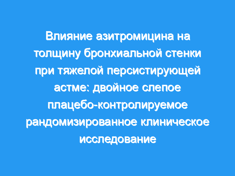 Азитромицин снижал ремоделирование дыхательных путей на животных моделях астмы. Однако его влияние на людей еще не изучено. Целью данного исследования было изучение влияния длительного лечения азитромицином на толщину стенок дыхательных путей у пациентов с тяжелой персистирующей астмой.