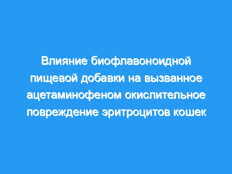 Определить влияние коммерческого биофлавоноидного антиоксиданта на вызванное ацетаминофеном окислительное повреждение эритроцитов кошек. Дизайн: Рандомизированное контролируемое исследование. Животные: 45 здоровых кошек, соответствующих возрасту. Процедура: Кошки были распределены на 3 экспериментальные группы. Группы 1 и 3 получали биофлавоноидный антиоксидант (10 мг/сут) перорально в течение 2 недель. Группы 2 и 3 получали окислительную терапию ацетаминофеном (90 мг/кг [41 мг/фунт] массы тела, ПО) на 7-й день. Объем упакованных клеток, процентное содержание эритроцитов с тельцами Хайнца, концентрацию метгемоглобина в крови и концентрацию восстановленного и окисленного глутатиона в крови определяли в разное время в течение 2-недельного периода исследования.