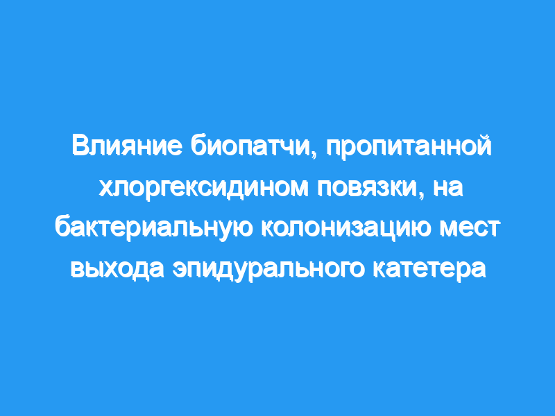 Мы пришли к выводу, что Биопатч был эффективен в снижении бактериальной колонизации места выхода эпидурального катетера.