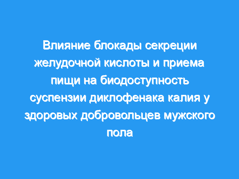 Биодоступность однократной дозы суспензии диклофенака калия (KDIC) (Flogan, Merck, 7 мл, 105 мг) была изучена у 13 здоровых добровольцев мужского пола натощак (фаза плацебо, PLA), после блокады секреции желудочной кислоты (подострая предварительная обработка омепразолом, фаза OME) и после приема пищи (фаза ЕДЫ). Был принят 14-дневный период вымывания между фазами.