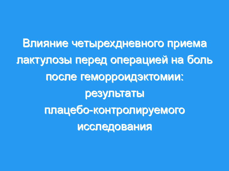 Влияние четырехдневного приема лактулозы перед операцией на боль после геморроидэктомии было изучено в проспективном двойном слепом рандомизированном исследовании tria.
