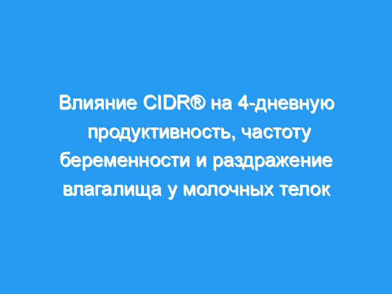 В заключение, протокол CIDR улучшил репродуктивные параметры молочных телок по сравнению с протоколом PGF2a. Слизь после удаления вставки CIDR® не влияла на частоту наступления беременности.