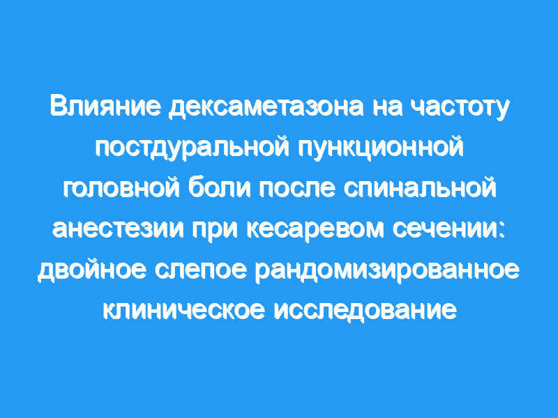 В этом исследовании мы оценили влияние дексаметазона, используемого в качестве профилактики тошноты и рвоты, на частоту постдуральной пункционной головной боли (PDPH) у беременных женщин, получавших спинномозговую анестезию при кесаревом сечении.