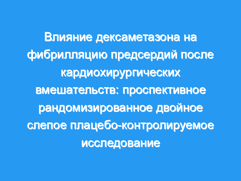 Целью данного исследования была оценка влияния предоперационного дексаметазона (ДЕКС) на возникновение послеоперационной фибрилляции предсердий (ФП). Дизайн: Проспективное рандомизированное двойное слепое плацебо-контролируемое клиническое исследование.