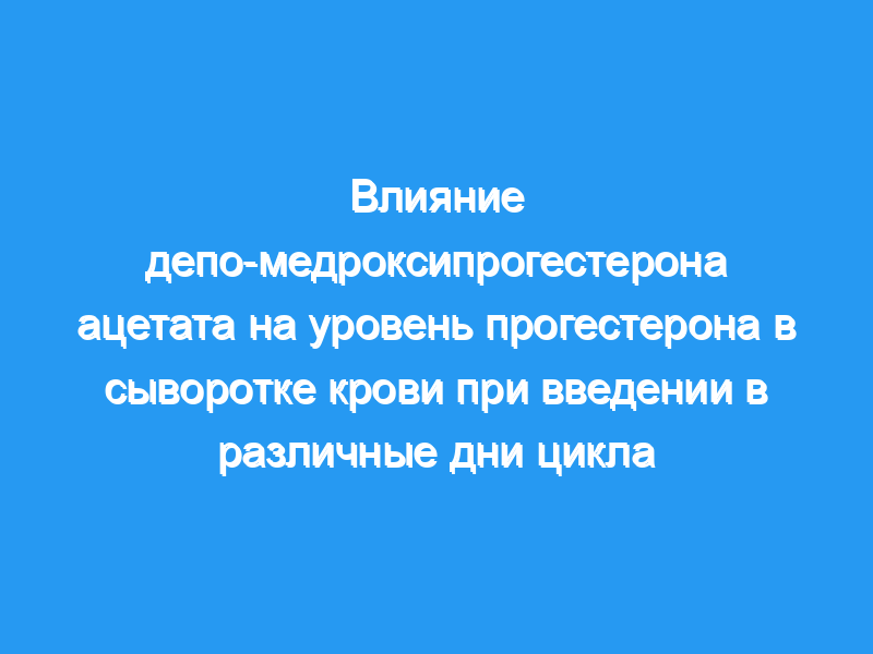 Депо-медроксипрогестерона ацетат (DMPA) в обычной дозе 150 мг вводили внутримышечно 49 здоровым, уже стерилизованным тайским женщинам на 5-й день цикла (13 испытуемых), 7-й день (12 испытуемых), 9-й день (13 испытуемых) и 11-й день (11 испытуемых) цикла. нормальный менструальный цикл.
