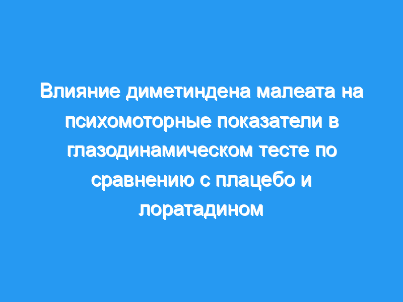 Таким образом, можно утверждать, что после однократного приема диметиндена малеата нет седативного эффекта по сравнению с лоратадином или плацебо.