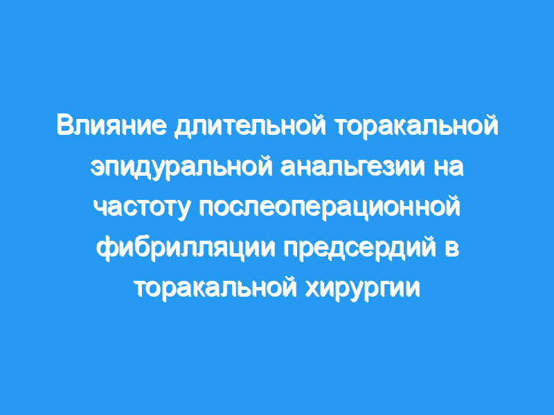 Послеоперационная торакальная эпидуральная анальгезия значительно снижает частоту послеоперационной фибрилляции предсердий у пациентов, перенесших расширенную операцию на легких, и наиболее эффективен у пациентов, перенесших лобэктомию.