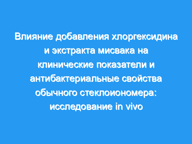 Добавление CHX и miswak к GIC продемонстрировало превосходные антибактериальные свойства, чем обычный GIC, без серьезного влияния на клинические показатели восстановление продолжалось до 6-месячного наблюдения, но неудача значительно увеличилась с точки зрения краевых дефектов через 9 месяцев с CHX (группа 1).