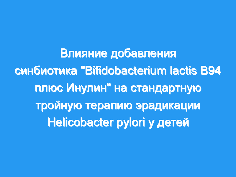 Целью данного исследования является оценка влияния синбиотика Bifidobacterium lactis B94 плюс инулин в дополнение к стандартной тройной терапии на показатели эрадикации инфекции Helicobacter pylori (H. pylori).