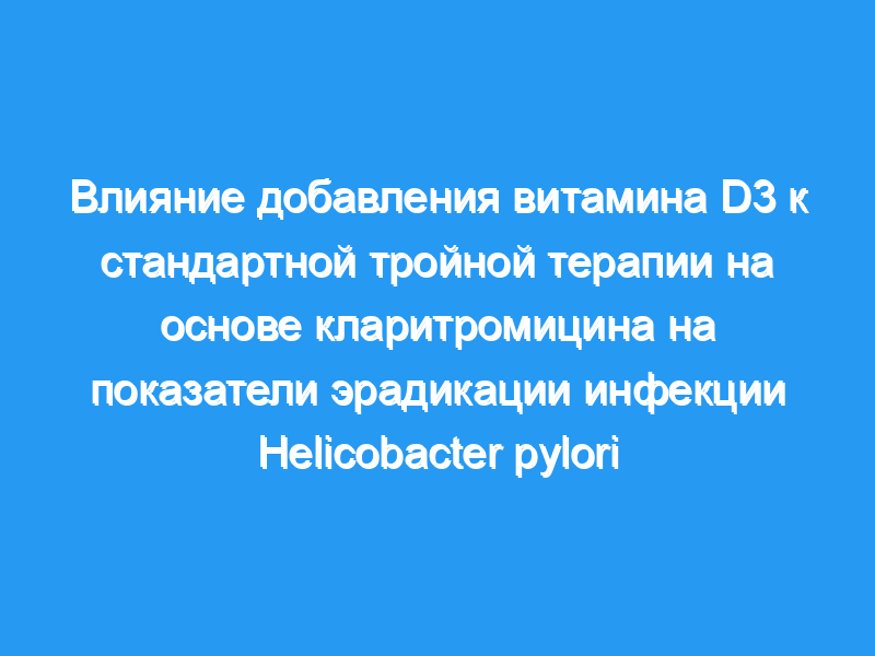 Добавление витамина D3 к стандартной тройной терапии на основе кларитромицина может обеспечить дополнительное преимущество для достижения значительно более высоких показателей эрадикации инфекции H. pylori.