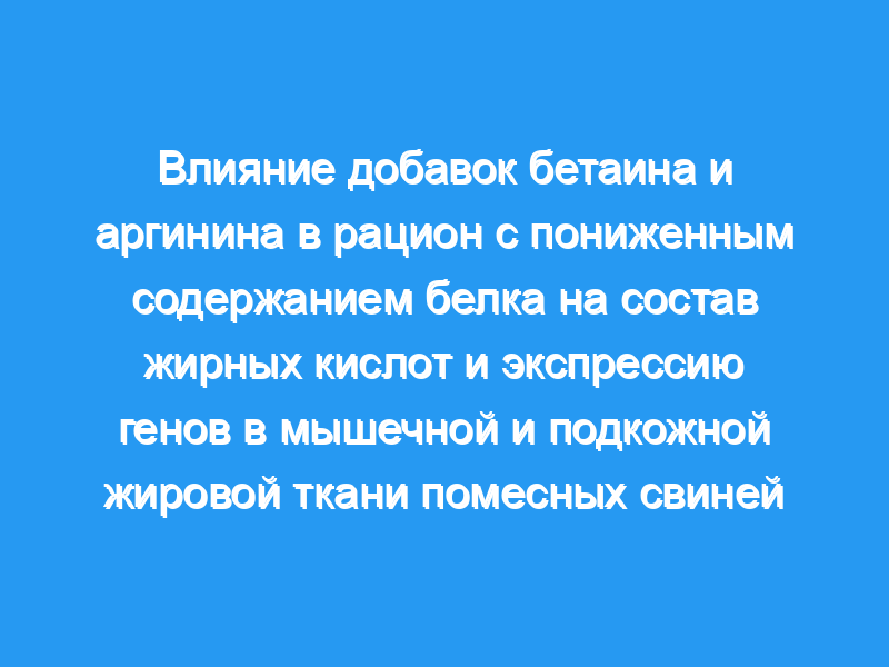 Оценивали изолированное или комбинированное воздействие добавок бетаина и аргинина в рацион с пониженным содержанием белка (RPD) на содержание жира, состав жирных кислот и уровни мРНК генов, контролирующих липидный обмен у свиней.