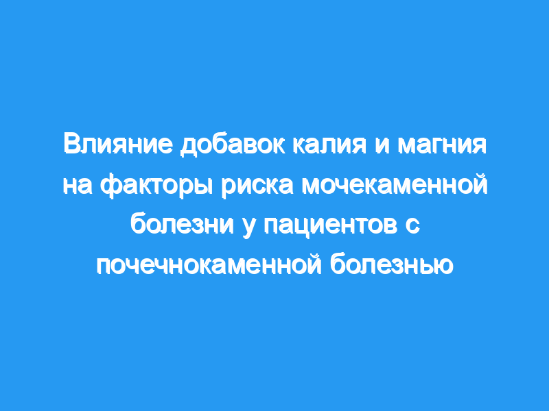 при воздействии калий и магний в моче факторов риска развития почечно-каменной болезни были изучены в 61 почечного камня пациент.