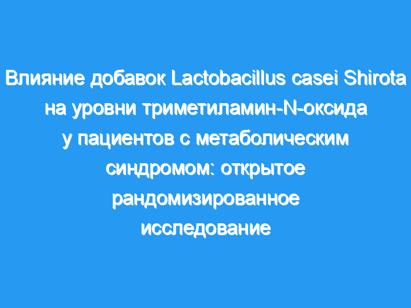 Недавние исследования на животных моделях показали связь между приемом с пищей фосфатидилхолина (ПК), холина, l-карнитина и сердечно-сосудистым риском. Метаболизм ПК и l-карнитина, зависящий от кишечной микробиоты, участвует в образовании триметиламина (ТМА), который в дальнейшем метаболизируется до проатерогенного соединения триметиламин-N-оксид (TMAO). Было высказано предположение, что изменения в микробиоте кишечника при добавлении пробиотических напитков могут привести к изменению уровня ТМАО. Следовательно, целью данного анализа было изучение влияния Lactobacillus casei Shirota (LcS) на образование TMAO у пациентов с метаболическим синдромом.