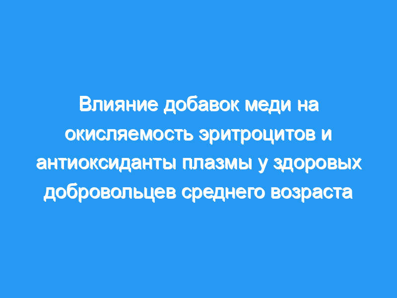 В совокупности эти данные свидетельствуют о том, что потребление меди в количестве до 7 мг/сут не обладает прооксидантной активностью и может скорее привести к защите эритроцитов от окисления.