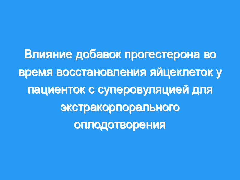 Было проведено рандомизированное контрольное исследование с участием 42 пациенток с суперовуляцией экстракорпорального оплодотворения (ЭКО) для изучения эффектов дополнительного введения прогестерона (Р) во время лапароскопии.