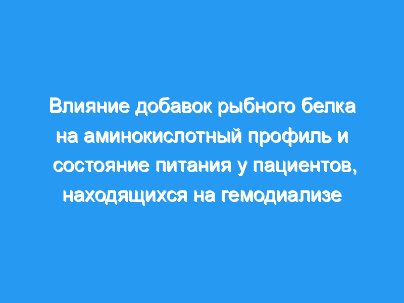 Концентрации аминокислот, альбумина, преальбумина, трансферрина, комплемента С3 и С4 в плазме крови и антропометрические показатели были определены до и после перорального приема нового препарата рыбьего белка у 19 пациентов, находящихся на гемодиализе, участвующих в рандомизированном двойном слепом плацебо-контролируемом перекрестном исследовании продолжительностью 6 месяцев.