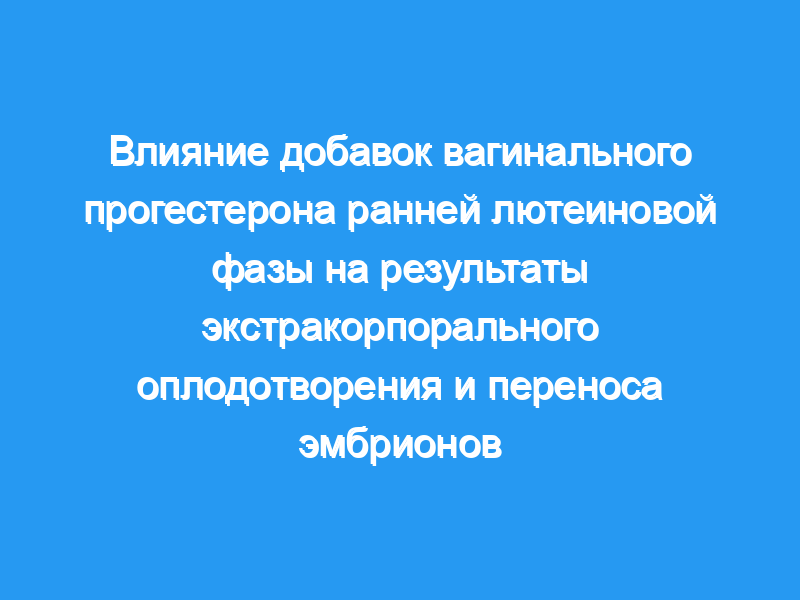 Чтобы определить, улучшает ли прием вагинального прогестерона в ранней лютеиновой фазе исход экстракорпорального оплодотворения -переноса эмбрионов (ЭКО-ЭТ).