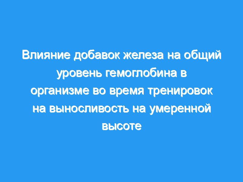 Целью исследования было проверить гипотезу о том, что прием добавок железа у хорошо тренированных спортсменов, не страдающих дефицитом железа, приводит к повышенному повышению общего уровня гемоглобина в организме (ТБГ) во время тренировок на умеренной высоте.