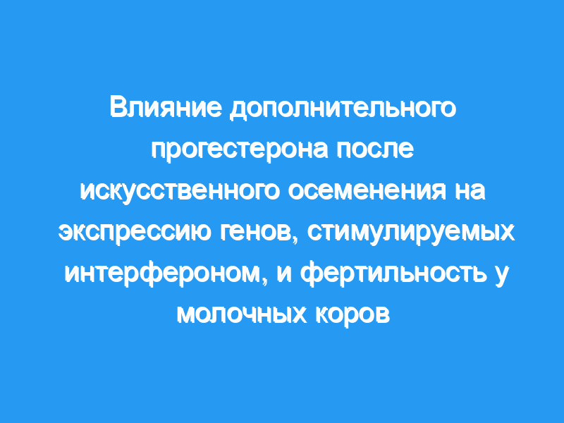 Целью настоящего исследования было оценить влияние дополнительного прогестерона после искусственного осеменения (ИИ) на экспрессию генов, стимулируемых IFN (ISG), в лейкоцитах крови и фертильность у лактирующей молочной коровы.