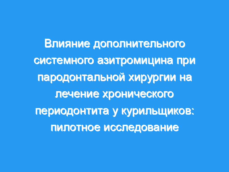Наряду с традиционной хирургической терапией системные антибиотики могут обеспечить более эффективное лечение у курильщиков, воздействуя на бактерии, инвазирующие ткани. Целью этого рандомизированного, плацебо-контролируемого, двойного маскированного клинического исследования была оценка дополнительных эффектов системного азитромицина (АЗМ) в сочетании с хирургией по уменьшению пародонтального кармана при лечении хронического периодонтита у курильщиков.