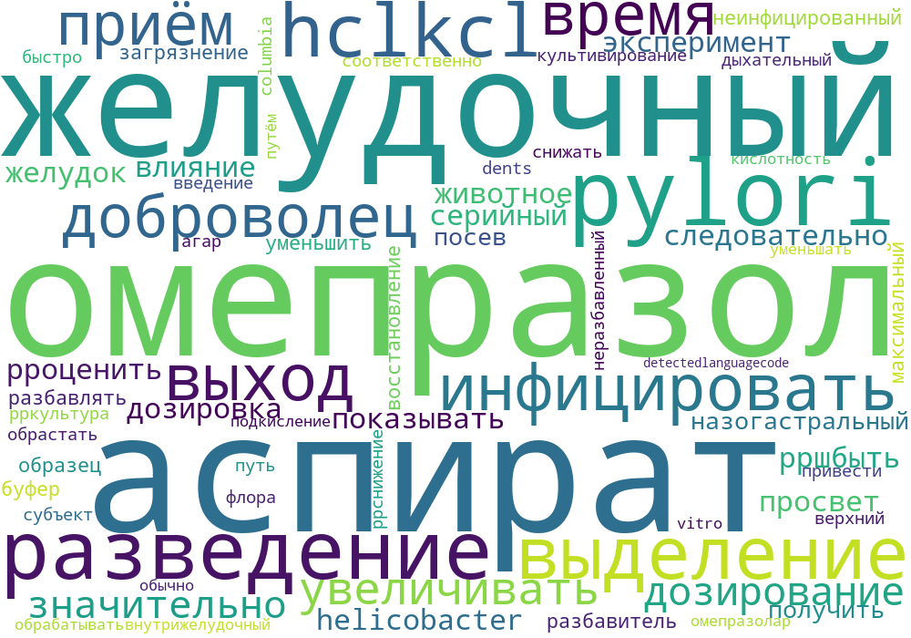 Культуры неразбавленного желудочного сока быстро обрастали флорой верхних дыхательных путей. Разведение HCl-KCl привело к выделению H. pylori из 77% аспиратов инфицированного субъекта до и 67% аспиратов во время введения омепразола. Выходы были значительно ниже при разведении MRD, 47% и 10% соответственно. Дозирование омепразола значительно снижало выход после разведения MRD, но не после разведения HCl-KCl.