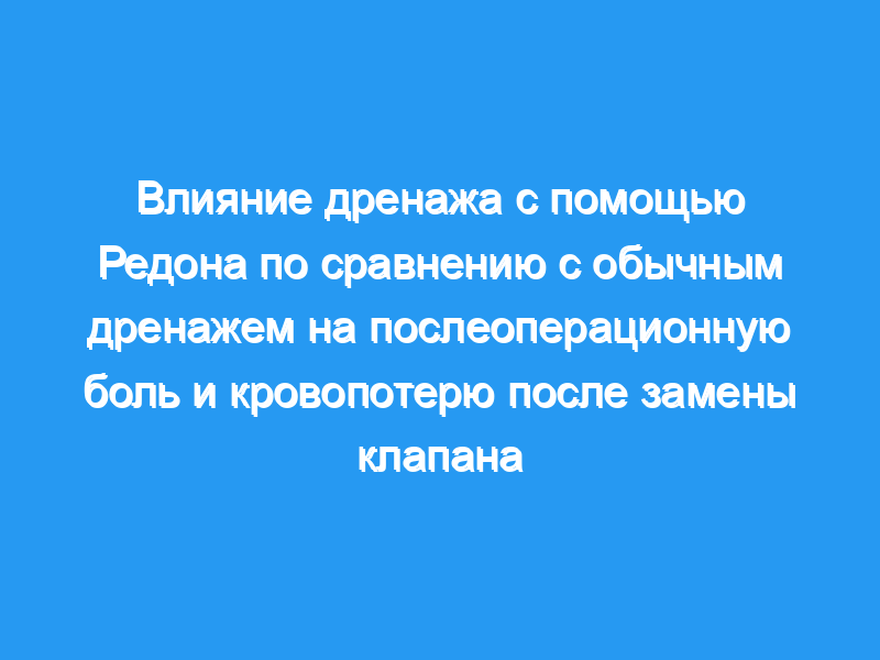 Мы показали, что дренаж с помощью дренажа Редона по сравнению с обычным дренажом не влияет на интенсивность послеоперационной боли и кровопотерю после замены клапана.