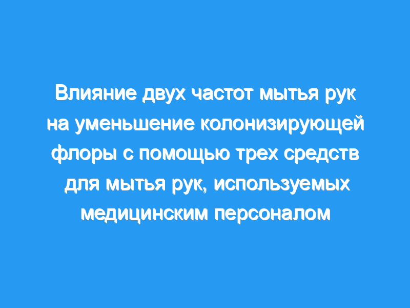 На основании этих результатов рекомендуется использовать антимикробное мыло, когда частота мытья рук высока и желательно длительное сокращение колонизирующей флоры..