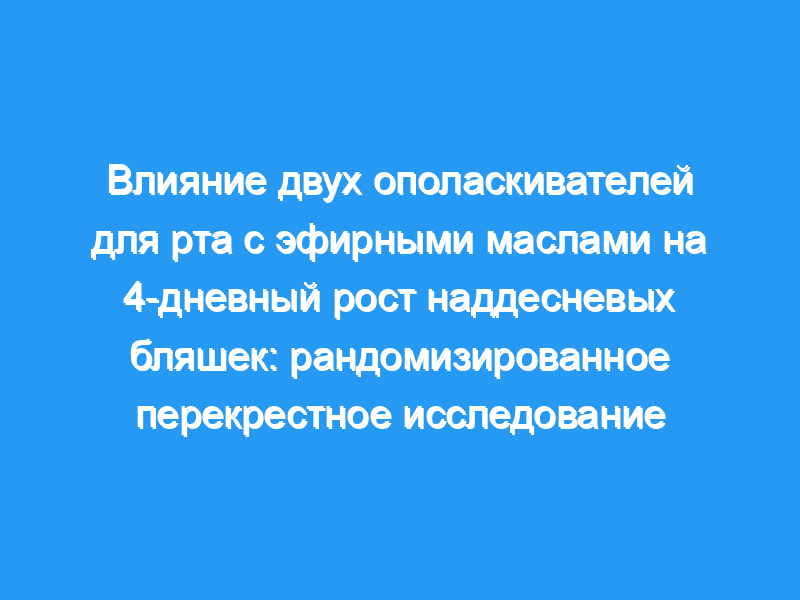 Различия между обработками были весьма значимыми (P <, 0,0001), с большим ингибированием зубного налета CHX по сравнению с полосканием EO, содержащим этанол (P = 0,012), что, в свою очередь, было значительно более эффективным, чем полоскание без этанола и физиологического раствора (P <, 0,001). Уменьшение роста зубного налета, наблюдаемое при полоскании EO без этанола, было очень похоже на то, что наблюдалось при использовании физиологического раствора (P >, 0,05).