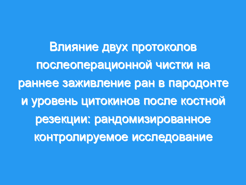 Целью этого РКИ-исследования было сравнить раннее заживление ран и уровни цитокинов в десневой щелевой жидкости у пациентов, получавших два различных протокола послеоперационной чистки.