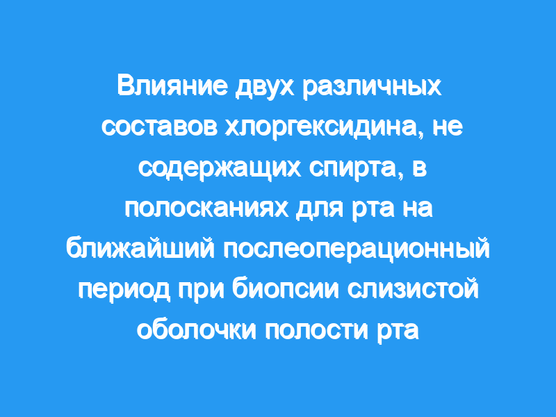 Целью настоящего одноцентрового, проспективного, рандомизированного, контролируемого исследования является оценка различия между двумя полосканиями для рта с хлоргексидином (CHX) и подходом без лечения в ближайшем послеоперационном периоде после биопсии слизистой оболочки полости рта.