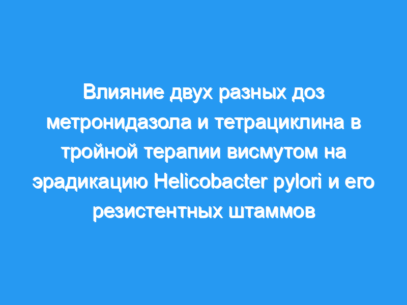 Классическая тройная терапия висмутом, тетрациклином и метронидазолом является одной из наиболее экономичных и эффективных схем эрадикации Helicobacter pylori. Целью исследования была оценка эффективности двух различных доз тетрациклина (TET) и метронидазола (MET) при лечении инфекции H. pylori и ее штаммов, устойчивых к MET.