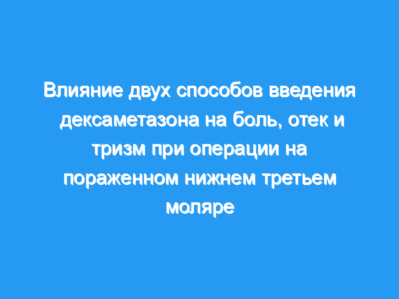 Как пероральное введение, так и местная инъекция дексаметазона оказались эффективными в уменьшении боли, отек и тризм по сравнению с контрольной группой после операций на нижних третьих молярах, достигая аналогичных результатов.